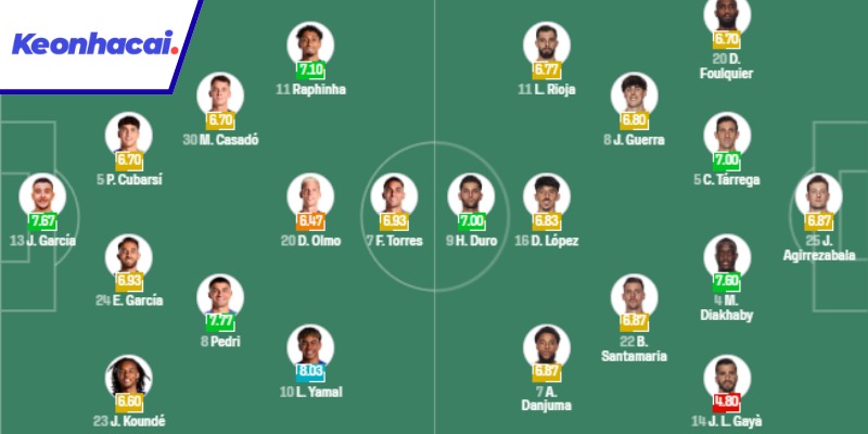 | Cầu thủ ra sân | Iñaki Peña, G. Martín, Eric García, Cubarsi, Koundé, Casadó, Pedri, Dani Olmo, Lamine Yamal, Raphinha, Ferran Torres | Agirrezabala, Foulquier, C. Tárrega, Diakhaby, Gayà, Javi Guerra, Diego López, Rioja, Santamaría, Danjuma, Hugo Duro |