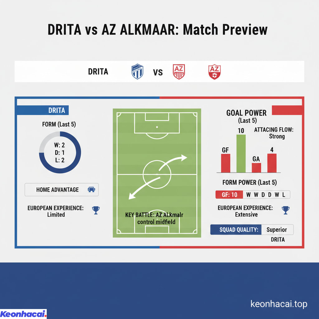 Nhìn vào phong độ và chất lượng đội hình, AZ Alkmaar rõ ràng được đánh giá cao hơn Drita. Đội bóng Hà Lan thể hiện lối chơi tấn công mạch lạc, hiệu quả với khả năng ghi bàn đa dạng. Họ cũng có kinh nghiệm chinh chiến tại các cúp châu Âu và thường xuyên tiến sâu. Drita, dù đã có những nỗ lực đáng khen ngợi ở Conference League, nhưng vẫn còn khoảng cách về trình độ và chiều sâu đội hình so với một đối thủ như AZ Alkmaar.