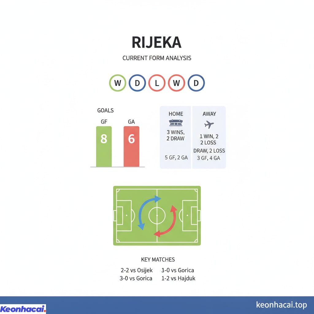 Rijeka đang trải qua một giai đoạn phong độ khá thất thường với những kết quả không mấy ổn định tại các đấu trường châu lục. Dù có những trận đấu chặt chẽ trên sân nhà, khả năng tấn công của họ vẫn là một dấu hỏi lớn.